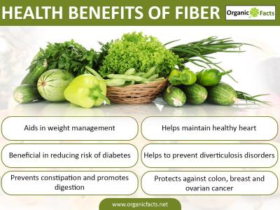 Fiber is loaded with health benefits, it can help lower blood sugar, cholesterol, and aid in preventing colon cancer.