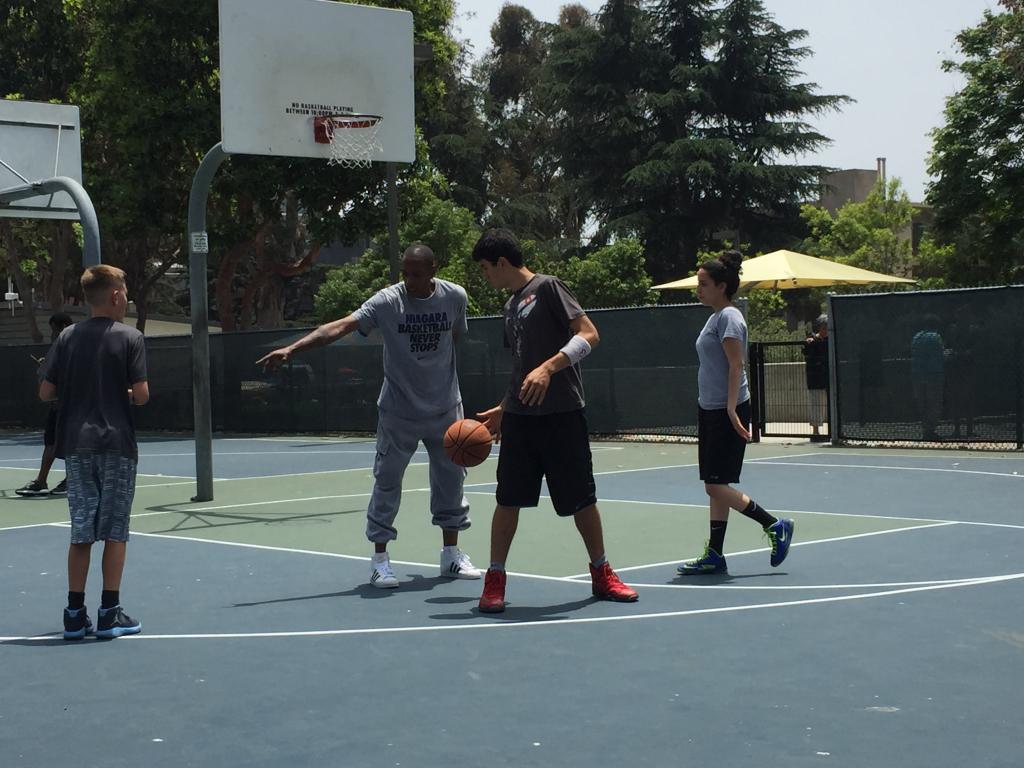 Look out...Coach Jackson playing some 2 on 2.