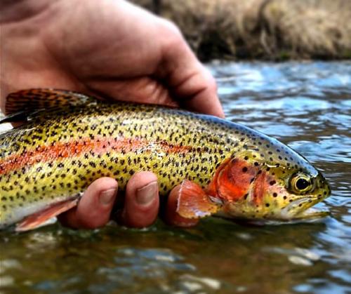 Backcountry camping. Rainbow trout swim the streams coming from the mountain. Pack a line and hook and it's fish for dinner.