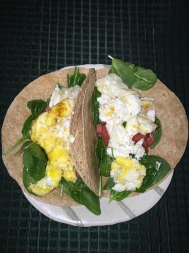 Oh yeah!!! Love my cheesy eggs, spinach, tomato burrito. Uummm good!! Takes like less than 5 minutes from start to eating. Healthy lean and clean!!!