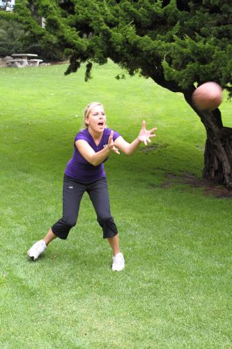 I hear the Patriots could use an extra wide receiver in today's NFL Playoff game. Director Lauren has some athletic moves and good hands. I think she can fill the position.