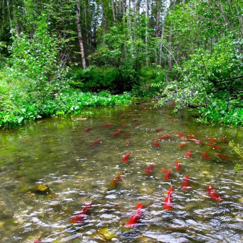 Always swim with friends, like these sockeye swimming up river in Alaska yesterday.