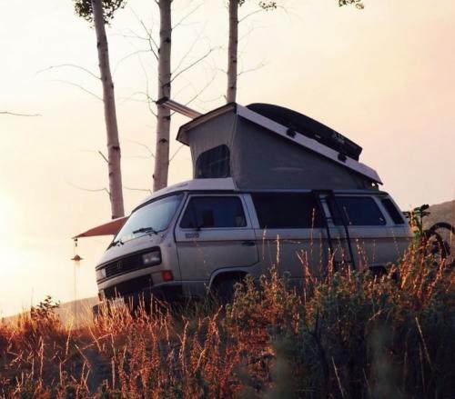 That's right...In case you didn't notice, I like Westfalia Camper Vans. This one is sweet. Awning, bike rack, additional storage on the pop top. This is the way to adventure!